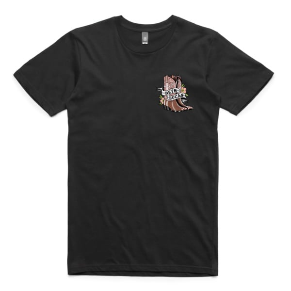 Black AS Colour Staple Tee with Beth Lucas Boots logo printed on the left chest.