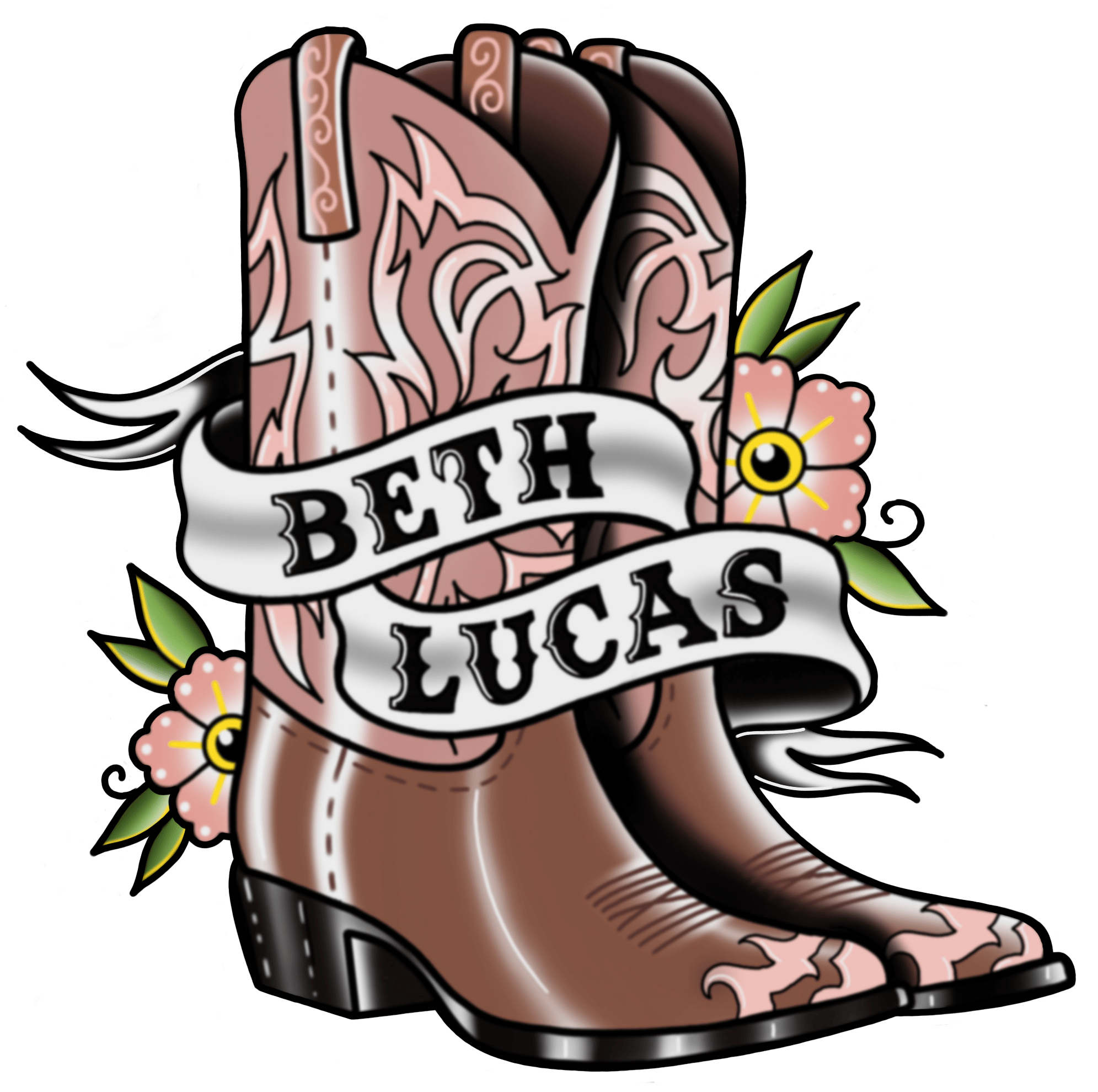 Pale Pink AS Colour Staple Tee with Beth Lucas Boots logo printed on the left chest.